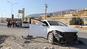 önünde refüje çarptı. Araç sürücüsü hafif yaralandı. Kazanın ardından yaklaşık