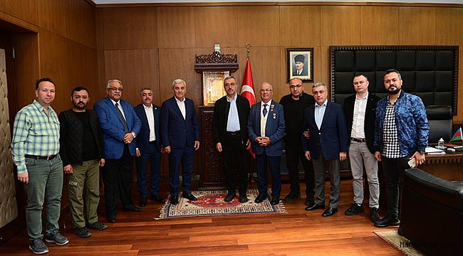 Kahramanmaraş Büyükşehir Belediye Başkanı Hayrettin Güngör, AK Parti 28. Dönem Kahramanmaraş Milletvekili Adayı Mehmet Şahin ile bir dizi ziyarette bulunmak üzere şehre gelen Azerbaycan Diaspora Bakan Yardımcısı Valeh Hacıyev, Destek Vakfı Başkanı Akram Abdullayev, Türkiye Azerbaycan Dernekleri Başkan Vekili Parviz Mammadzade ve Diaspora Üyesi Hidayet Gülam’ı makamında ağırladı. Şehrin tekrar ihya ve inşası noktasında gerçekleştirilen ve planlanan çalışmaların görüşüldüğü ziyarette heyet, 6 Şubat’ta meydana gelen depremler dolayısıyla Başkan Güngör’e geçmiş olsun dileklerini iletti. Nazik ziyaretleri için heyete teşekkür eden Başkan Güngör, “Bu zor süreçte yanımızda olan, desteklerini eksik etmeyen herkese teşekkür ediyoruz. İnşallah şehrimizi kısa sürede tekrar ayağa kaldıracağız” dedi.