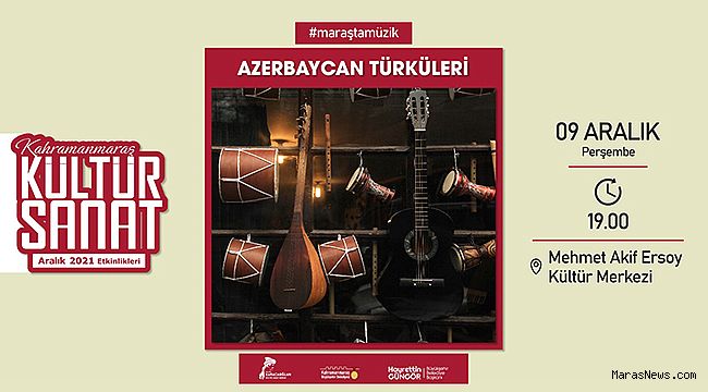 Kahramanmaraş Büyükşehir Belediyesi Aralık Kültür Sanat Etkinlikleri, Azerbaycan Türküleri konser programıyla devam ediyor. 9 Aralık Perşembe günü saat 19.00’da Mehmet Akif Kültür Merkezi’nde gerçekleşecek etkinlikte kardeş ülke Azerbaycan’a ait ezgiler kulakların pasını silecek. Sanatçılar Alper Şakalar, Serap Yağmur İlhan ve Hatice Gökçeli’nin yer alacağı ücretsiz konser programına tüm vatandaşlar davet ediliyor.