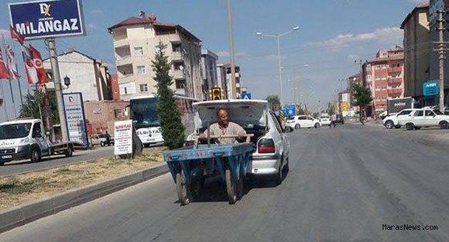 Adnan Menderes Bulvarı'nda tablasıyla yük taşıyarak geçimini sağlayan ve ismi öğrenilemeyen bir kişiyi otomobil bagajında görenler şaşkınlıklarını gizleyemedi. Kendisi otomobilin bagajına oturan vatandaş, yolda bıraktığı tablasına da sıkı sıkı sarılarak trafikte otomobille birlikte uzun süre ilerledi. Sıcaktan korunmak isteyen vatandaş, otomobilin bagaj kapağını da gölgelik olarak kullandı.