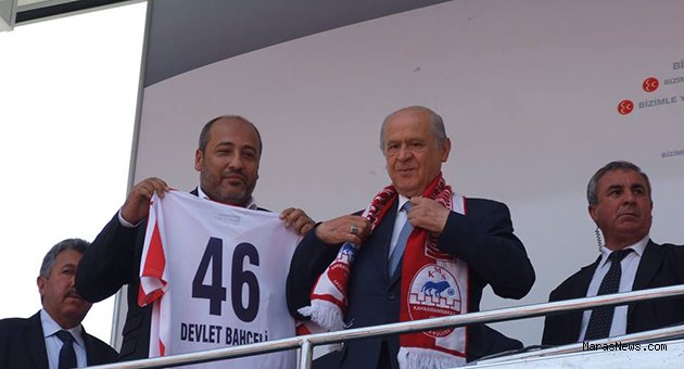 Seçim gezileri doğrultusunda Kahramanmaraş'ta partisinin düzenlediği mitingde konuşan Miliyetçi Hareket Partisi (MHP) Genel Başkanı Devlet Bahçeli’ye Kahramanmaraş’ın markası olan Kahramanmaraşspor’un üzerinde 46 Devlet Bahçeli yazan forması hediye edildi.