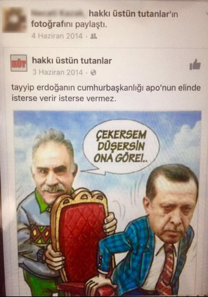 Sacı N.K.’nin bu paylaşımıyla Cumhurbaşkanına hakaret