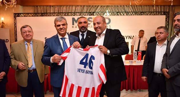 Kahramanmaraş siyaset tarihinin en büyük ünvanlarından birine sahip olan Başbakan Yardımcısı Veysi Kaynak fırsat bulduğu zamanlarda memleketine gelerek ziyaretlerini sürdürüyor. Kahramanmaraş’taki yatırımları yerinde görmek ve eksiklerini tespit etmek için kente gelen Başbakan Yardımcısı Veysi Kaynak Kahramanmaraş'ta MÜSİAD Şubesi'nin ev sahipliğinde işadamı, esnaf ve sivil toplum kuruluşlarıyla bir araya geldi. Kahramanmaraşspor Başkanı Fatih Mehmet Ceyhan’da iş dünyasının yer aldığı toplantıda iş adamı olarak katılarak Başbakan Yardımcısı Veysi Kaynak’a arkasında '46' sırt numaralı 'Veysi Kaynak' yazan forma, Müsiad Başkanı Atif Şirikçi’yede arkasında '46' sırt numaralı 'Atış Şirikçi' yazan forma hediye etti. Başbakan Yardımcısı Veysi Kaynak, yaptığı kısa açıklamada "Kahramanmaraşspor bizim şehrimizin takımı ve medari iftarımız. Takımın başarısı bizim başarımız, başarısızlığını da bizim başarısızlığımızdır. Bu nedenle Kahramanmaraşspor'umuz bu şehir için bir marka değeridir. Şehrimizin marka değerini üst liglerde görmek bizlere onur verir. Bu konuda üzerimize düşeni yapıyoruz ve yapmayada devam edeceğiz. İnşallah takıma verilen desteklerin devamı gelir ve inşallah kazanan Kahramanmaraş olur” dedi.