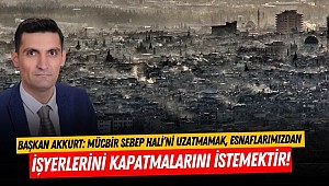 Akkurt, “Kahramanmaraş'ta yaşanan depremin izleri henüz silinmedi. İlimizde yaşanan çifte depremde birçok esnafımız işyerini kaybetti ve geliri, giderini karşılamıyor. Konteynerlerden oluşan işyerinde satışını yaptığı ürünlerin kazancı konteynerde yaktığı ve tükettiği enerji, su ve internet faturasını karşılamıyor. Henüz Kahramanmaraş'ta esnafa teslim edilen bir tane işyeri yok. Devletimiz esnafımıza mikro kredi ile destek oluyordu. Fakat bir kaç aya bunun da taksitleri ödenmesi istenecek. Kahramanmaraş’ta esnaf gerçekten perişan. Gününü siftahsız kapatan esnaflarımız var. Hatta bazı esnaflarımız ya ek gelir arayışına girdi ya da işyerlerini kapatmaya başladı. Esnaflarımız bu zamana kadar da Mücbir Sebep Hâli’nden dolayı devlete olan vergi ve harç borcu ödemelerini erteleyerek ayakta kaldılar. Hâl böyle iken; esnafımız, henüz toparlanamamışken; Mücbir Sebep Hali’ni uzatmamak, esnaflarımızdan işyerlerini kapatmalarını istemekten başka bir şey değildir” dedi.