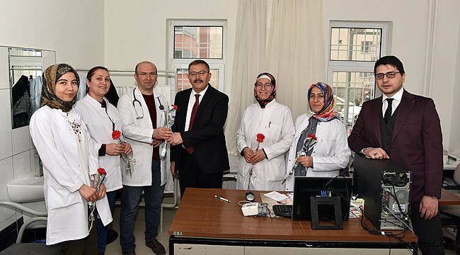 doktorlar ile hemşire ve sağlık personeline karanfil veren Başkan Aydın, 14 Mart