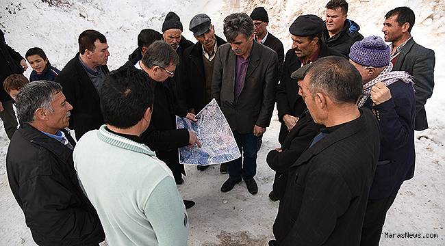 Kazandere Mahallesinde Göksun Belediyesi tarafından kilit parke yol çalışmalarının yapılacağı sokakları harita üzerinde gösterek bilgiler verdi.