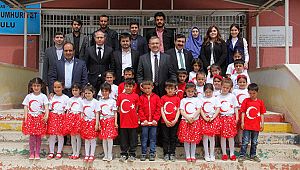 Başkan Aydın, Ayyıldız'lı tişörtlerle kendini karşılayan 1. Sınıf öğrencileri