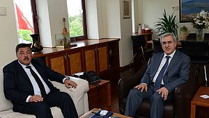Başkan Çeleğen ve Eker’i Rektörlük Makamında ağırlayarak