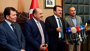 Büyükşehir Belediye Başkanı Fatih Mehmet Erkoç’un makamında gerçekleşen basın