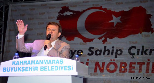 Başkan Erkoç: “Bunlar 17-25 Aralık'ta bir hukuk darbesine girişmişlerdi. Polisin teşkilatına sızmış bir grup terörist ile adaletin içine sızmış bir grup terörist, beraberce bir operasyon yapmışlardı. Şimdide askerinin arasına girmiş bir grup terörist ile yaptılar bunu. Biz, 17-25 Aralık'ta hukuk darbesinden sonra zaten 30 Mart'tan bu yana gerekli hassasiyeti gösteriyorduk. Sadece Büyükşehir olarak değil; Kahramanmaraş’ımızın genelinde bunlarla ilgili tavrı zaten ortaya koymuştuk. Sivil Toplum Kuruluşlarına karşı, bunları temsil eden Fethullah çetesinin adamlarına karşı tavrımızı o günden bu yana koymuştuk. Bunların panzehiri millettir. Yani cuntacılara karşı en önemli duruş; milletimizin birlik ve beraberliğidir. Şimdi Türkiye'yi temsil eden tüm siyasi partiler, Kahramanmaraş’ımızın tüm siyasileri hep bir olduk. Biz, milletçe böyle bir birlik ve beraberlik içinde olursak; bu birlik ve bu milleti tankla tüfekle kimse sindiremez. Uçaklarla sindiremez, hamdolsun! Silahlı kuvvetlerimiz de bunları temizleyecektir, temizliyorlar da! İnşallah birlik ve beraberliğimizi arttırdığımızda; bu meydanlardan dünyaya mesaj verdiğimizde, artık hiç kimse buna cesaret edemez” diye konuştu.