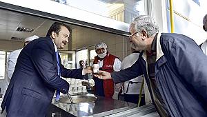 Başkan Erkoç, burada sanayide çalışan vatandaşlara sıcak çorba ikram ederek