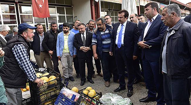 karşılarında gören Elbistan Yaş Sebze ve MeyveHali esnafları ziyaretten