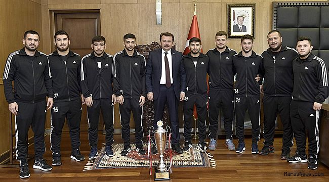 Güreşçileri kabulünde bir açıklama yapan Başkan Erkoç: “Kahramanmaraş Büyükşehir Belediyesi Güreş takımı Erzurum’da yapılan Türkiye şampiyonasında çok önemli bir başarıya imza atarak 7 madalya almış ve Türkiye şampiyonu olmuştur. Güreşçilerimiz tarihi bir başarıya imza atmışlardır.