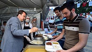 burada vatandaşlara kendi elleri ile yemek dağıtarak onlarla birlikte iftar