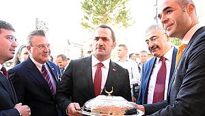 Bakır Kayık Tabak hediye edilerek, Büyükşehir Belediye Başkanı Fatih Mehmet
