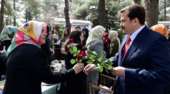 Başkan Erkoç daha sonra yemeğe katılan bayan personellere çeşitli hediyeler takdim ederek günlerini kutladı.