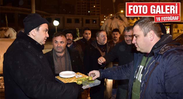 Şehir merkezinde yapılan karla mücadele çalışmalarını yerinde inceleyen Büyükşehir Belediye Başkanı Fatih Mehmet Erkoç, aynı zamanda gece çalışan işçilere tatlı ikram etti.