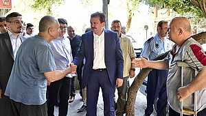 esnafları da ziyaret eden Başkan Erkoç, esnaflarla tek tek tokalaşarak hayırlı