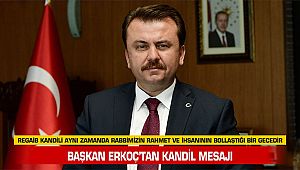 Başkan Erkoç’un mesajı şöyle: “İdrak edeceğimiz Regaib Kandili