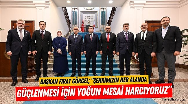 Ziyarete ilişkin değerlendirmede bulunan Büyükşehir Belediye Başkanı Fırat Görgel, “Ankara’daki temaslarımız kapsamında, 66. Hükümet Tarım ve Orman Bakanımız Sayın Vahit Kirişci, milletvekillerimiz, il ve ilçe başkanlarımızla birlikte Adalet Bakanımız Sayın Yılmaz Tunç’u ziyaret ettik. Kahramanmaraş’ımıza kazandırılacak adliye ek binası ve personel konutları başta olmak üzere birçok önemli konuyu istişare ettik. Şehrimizin adalet hizmetlerinde daha modern, daha güçlü bir altyapıya kavuşması için Bakanlığımızla yakın bir iş birliği içindeyiz. Deprem sonrası yeniden yapılanma sürecinde her kurumumuzun desteği büyük önem taşıyor. Bizler de Büyükşehir Belediyesi olarak, şehrimizin her alanda güçlenmesi ve vatandaşlarımızın kamu hizmetlerinden en verimli şekilde yararlanması adına yoğun bir mesai harcıyoruz. Sayın Bakanımıza şehrimize gösterdikleri ilgi ve destekleri dolayısıyla şükranlarımızı sunuyoruz” dedi.
