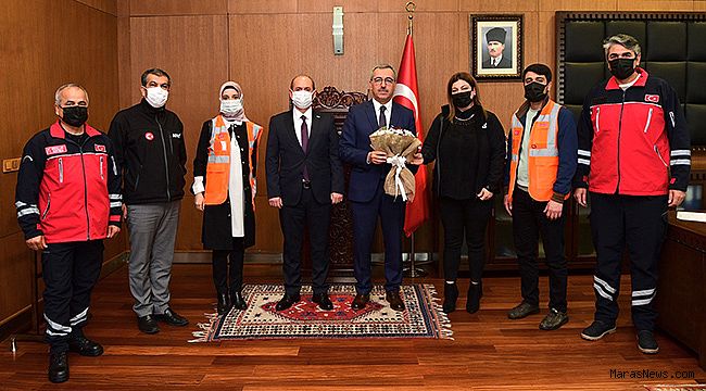 Kahramanmaraş Büyükşehir Belediye Başkanı Hayrettin Güngör, Deprem Haftası dolayısıyla Afet ve Acil Durum (AFAD) İl Müdürü Aslan Mehmet Coşkun ve Yönetim Kurulu üyelerini makamında ağırladı. Ziyaretten duyduğu memnuniyeti dile getiren Başkan Güngör, “AFAD İl Müdürü Aslan Mehmet Coşkun ve ekip arkadaşlarını misafir ettik. Bu vesileyle Deprem Haftası’nın bu alandaki farkındalığı daha da artırmasını ümit ediyorum. Nazik ziyaretlerinden dolayı AFAD İl Müdürü Aslan Mehmet Coşkun ve ekip arkadaşlarına teşekkür ediyorum” ifadelerini kullandı. AFAD İl Müdürü Aslan Mehmet Coşkun ise misafirperverliğinden dolayı Büyükşehir Belediye Başkanı Hayrettin Güngör’e teşekkür etti.