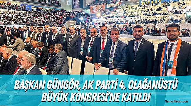 Kahramanmaraş Büyükşehir Belediye Başkanı Hayrettin Güngör, Cumhurbaşkanı ve AK Parti Genel Başkanı Recep Tayyip Erdoğan’ın teşrifleriyle gerçekleştirilen AK Parti 4. Olağanüstü Büyük Kongresi’ne katıldı. Ankara Spor Salonu’nda gerçekleştirilen kongrede AK Parti Genel Başkanı Recep Tayyip Erdoğan, geçerli oyların tamamını alarak AK Parti Genel Başkanlığına yeniden seçilirken; Merkez Karar ve Yönetim Kurulu, Merkez Disiplin Kurulu, Siyasi Erdem ve Etik Kurulu ile Genel Merkez Parti İçi Demokrasi Hakem Kurulunun de yeni üyeleri belirlendi.