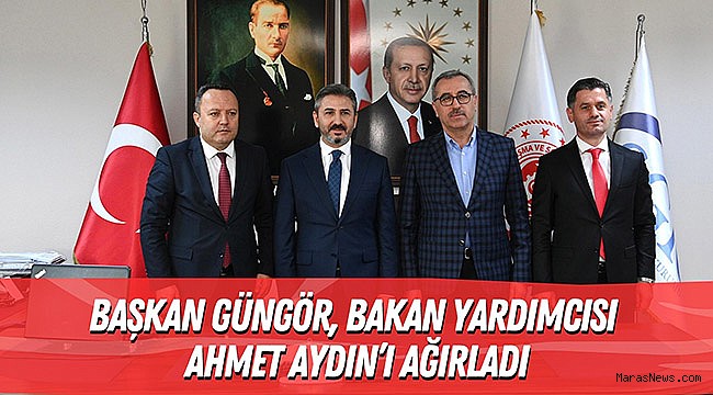 Kahramanmaraş Büyükşehir Belediye Başkanı Hayrettin Güngör, alanında yürütülen çalışmaları incelemek ve bir dizi ziyarette bulunmak üzere şehre gelen Çalışma ve Sosyal Güvenlik Bakan Yardımcısı Ahmet Aydın’ı makamında ağırladı. Vali Mükerrem Ünlüer, Dulkadiroğlu Kaymakamı Dr. Fatih Çelikkaya ve İl Emniyet Müdürü Nurettin Gökduman’ın da yer aldığı ziyarette Başkan Hayrettin Güngör, şehirde yürütülen ve planlanan çalışmalara ilişkin Bakan Yardımcısı Aydın’a bilgiler aktardı. Devamında Başkan Hayrettin Güngör, Çalışma ve Sosyal Güvenlik Bakan Yardımcısı Ahmet Aydın ile İŞKUR ve SGK İl Müdürlüğünü ziyaret ederek deprem sonrası kurumların faaliyetlerine ilişkin bilgiler aldı.