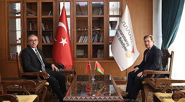 Yeni Kahramanmaraş vizyonu doğrultusunda şehrin imarı ve inşası noktasında yoğun gayretini sürdüren Kahramanmaraş Büyükşehir Belediye Başkanı Hayrettin Güngör, bir dizi ziyaret ve temasta bulunmak üzere şehre gelen Belarus Cumhuriyeti Ankara Büyükelçisi Viktar Rybak’ı makamında ağırladı. Depremler sonrası şehrin imarı ve inşası noktasında iş birliğiyle hayata geçirilecek projelerin istişare edildiği ziyarete ilişkin değerlendirmelerde bulunan Başkan Hayrettin Güngör, “Belarus Cumhuriyeti Ankara Büyükelçisi Sayın Viktar Rybak misafirimiz oldu. Depremler sonrası yeni Kahramanmaraş’ın imarı ve inşası noktasında Belarus’la ekonomik ve ticari ilişkilerimizi geliştirecek iş birliği alanları hakkında görüşme sağladık. Alt ve üstyapısı, konut ve iş yerleri, sosyal donatıları, sağlık tesisleri ve yeşil alanlarıyla yeni Kahramanmaraş’ın inşası noktasında ulusal ve uluslararası kurum ve kuruluşlarımızla birlikte gayretimizi sürdürüyoruz. Nazik ziyaretleri ve destekleri için Sayın Viktar Rybak’a teşekkür ediyoruz” cümlelerini kaydetti.