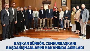 Heyete, İstiklal Madalyası ve kültür sanat çalışmaları hakkında da bilgiler aktaran Başkan Güngör, “Yeni Dünya Düzeninde Türkiye İçin Riskler ve Fırsatlar konulu Türkiye Sohbetleri Halk Buluşması için şehrimize teşrif eden Sayın Cumhurbaşkanı Başdanışmanlarımız Ayşe Nur Bahçekapılı, Mehmet Uçum ve Ahmet Selim Köroğlu ile Cumhurbaşkanı Danışmanımız ve Sivil Dayanışma Platformu Başkanımız Ayhan Oğan’ı konferans öncesi Büyükşehir Belediyemizde misafir ettik. Misafirlerimize şehrimizde devam eden ve planlanan yatırımlar ile ilgili sunum yaptık. İstiklal Madalyamız ve şehrimizde gerçekleştirilen kültür sanat çalışmaları hakkında bilgiler aktardık. Şehrimize teşrif eden kıymetli misafirlerimize bir kez daha canı gönülden teşekkür ediyorum” ifadelerini kullandı.