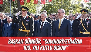 Cumhuriyetin 100. yıl dönümünü tebrik eden Büyükşehir Belediye Başkanı Hayrettin Güngör, “Zaferle nihayetlenen milli mücadelemizin Cumhuriyetle taçlanışının 100. yıl dönümünü kutluyoruz. Sayın Valimiz, şehir protokolümüz ve hemşehrilerimizle Atatürk Meydanı’nda çelenk sunma törenimizi gerçekleştirdik. İnşallah yarın da Adliye binamızın yanında kutlama programımıza devam edeceğiz. Bu vesileyle; Cumhuriyet’in banisi Gazi Mustafa Kemal Atatürk ve silah arkadaşlarını minnetle yâd ediyor, aziz vatanımızı korumak için canını feda etmiş tüm şehitlerimize ve ebediyete uğurladığımız gazilerimize Allah’tan rahmet diliyorum. 29 Ekim Cumhuriyet Bayramı’mız kutlu olsun” dedi.