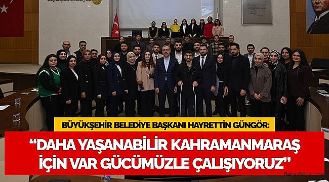Kahramanmaraş Büyükşehir Belediye Başkanı Hayrettin Güngör, Ocak ayı Gençlik Meclisi Toplantısı’na katıldı. Büyükşehir Belediyesi Meclis Salonu’nda gerçekleştirilen toplantıda; Gençlik Meclisi Başkanı Abdulvahap Dertli ve meclis üyeleri de yer aldı. Saygı duruşu ve İstiklal Marşı’nın okunmasıyla başlayan toplantıda, Gençlik Meclisi’nin çalışmaları ve projeleri istişare edildi. Toplantıda konuşan Büyükşehir Belediye Başkanı Hayrettin Güngör, “Gençlik Meclisi’mizin her bir önerisi bizim için çok kıymetli. Her zaman ifade ettiğimiz gibi Gençlik Meclisi, gençlerimizle aramızda köprü vazifesi görüyor. Bizler de bu noktada gençlerimize yönelik faaliyetlerimizi hayata geçiriyoruz. Emeği geçen herkese teşekkür ediyorum” dedi.