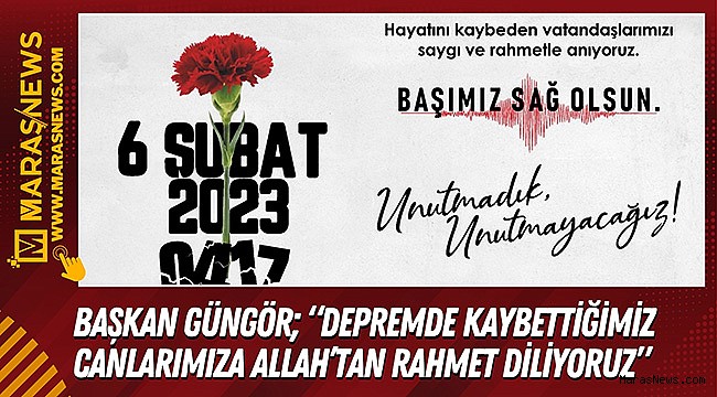 Kahramanmaraş Büyükşehir Belediye Başkanı Hayrettin Güngör, 6 Şubat depremlerinin 1. yıl dönümü dolayısıyla bir mesaj yayımladı. Başkan Hayrettin Güngör mesajında, “6 Şubat 2023 tarihinde şehrimiz merkezli meydana gelen ve 11 ilimizi etkileyen depremlerin üzerinden 1 yıl geçti. Acımız ilk günkü gibi taze. Kaybettiğimiz canlarımızın acıları hala yüreğimizde. Bu süreçte devlet millet el ele bir olduk, birlik olduk. Hep birlikte yaralarımızı sarmaya, acılarımızı hafifletmeye çalıştık. Bir yandan yaralarımızı sararken bir yandan da yine el birliğiyle yeni Kahramanmaraş’ın imarı ve inşası noktasında gayretimizi sürdürdük. Hamdolsun yeni Kahramanmaraş vizyonu doğrultusunda çok ciddi ilerleme kat ettik. Alt ve üstyapısı, kalıcı konut ve işyerleri, sosyal donatıları, yeşil alanları, mimarisi, eğitim ve sağlık tesisleriyle afetlere dayanıklı yeni Kahramanmaraş’ın inşası büyük bir hızla sürüyor. İnşallah şehrimizi tarihimize uygun, çok daha güzel bir şekilde inşa edeceğiz. Bu vesileyle asrın felaketinde kaybettiğimiz canlarımıza bir kez daha Allah’tan rahmet, yakınlarına baş sağlığı diliyoruz” cümlelerini kaydetti.