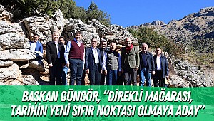 Kahramanmaraş Büyükşehir Belediye Başkanı Hayrettin Güngör, TBMM Tarım, Orman ve Köyişleri Komisyonu Başkanı Prof. Dr. Vahit Kirişci ile Onikişubat ilçesi Döngel Mahallesi’nde bulunan Direkli Mağarası’nı ziyaret ederek keşif çalışmalarını yerinde inceledi. AK Parti Kahramanmaraş Milletvekili Ömer Oruç Bilal Debgici’nin de yer aldığı ziyarette keşif çalışmalarına ilişkin ekipten bilgiler alan Başkan Hayrettin Güngör, “Şehrimizin doğal güzelliklerinden Döngel Direkli Mağarası’nda keşif çalışmaları uzun yıllardır uzman ekiplerce devam ediyor. Bugün de önceki dönem Tarım ve Orman Bakanımız Sayın Vahit Kirişci ve Milletvekilimiz Ömer Oruç Bilal Debgici ile alanı ziyaret ederek mağaradaki keşif çalışmalarına ilişkin hocalarımızdan bilgiler aldık. 12 bin 540 yıllık geçmişi ile Direkli Mağarası için, tarihin yeni sıfır noktası olmaya aday diyebiliriz” dedi.