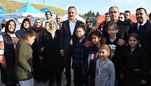 Kahramanmaraş Büyükşehir Belediye Başkanı Hayrettin Güngör, incelemelerde bulunmak ve bir dizi toplantıya katılmak üzere şehre gelen Milli Eğitim Bakanı Mahmut Özer ile Kılavuzlu Geçici Barınma Merkezi’nde çocuklar için oluşturulan eğitim çadırlarını ziyaret etti. Vali Ömer Faruk Coşkun, AK Parti Kahramanmaraş Milletvekili Habibe Öçal ve İl Milli Eğitim Müdürü Yusuf Kahraman’ın da yer aldığı ziyarette çocuklarla bir araya gelerek muhabbet eden Başkan Güngör, öğrencilere eğitim hayatlarında da başarılar diledi.