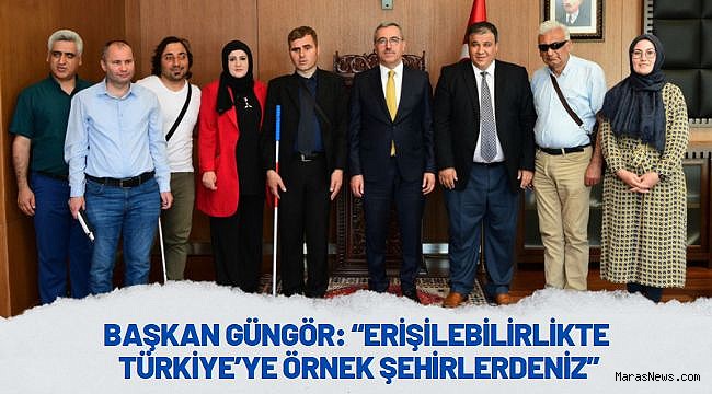 Kahramanmaraş Büyükşehir Belediye Başkanı Hayrettin Güngör, Türkiye Görme Engelliler Spor Federasyonu Yönetim Kurulu Üyesi Kenan Demir, Türkiye Görme Engelliler Derneği (TURGED) Genel Başkanı Fatih Karadayı, Genel Merkez Yönetim Kurulu Üyeleri ve Kahramanmaraş Şube Başkanı Mustafa Çakmak ile bir araya geldi. Kahramanmaraş’ta engellilere yönelik sağlanan desteklerden dolayı Büyükşehir Belediye Başkanı Hayrettin Güngör’e teşekkür eden TURGED Kahramanmaraş Şube Başkanı Mustafa Çakmak, “Kahramanmaraş Büyükşehir Belediyesi tarafından şehrimizde engellilere yönelik pek çok destek sağlanıyor. Şehrimizde engellilerin erişebilirlik sorunu Hayrettin Güngör Başkanımızın destekleriyle ve gerçekleştirdiği projelerle son buldu diyebilirim. Hayrettin Güngör Başkanımız varsa engelli bireylerin yolu açık” dedi.