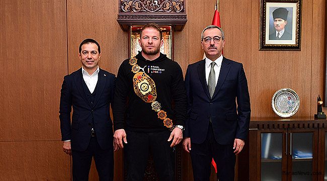 Kahramanmaraş Büyükşehir Belediye Başkanı Hayrettin Güngör, Türkiye Güreş Federasyonu Başkanı Şeref Eroğlu ile bir araya geldi. Kurtuluş Etkinlikleri kapsamında düzenlenen Şalvar Güreşi Dünya Şampiyonası’nda birinci olan Başpehlivan İsmail Balaban’ın da yer aldığı ziyarette gerçekleştirilen etkinlikle ilgili değerlendirmeler yapıldı. Ziyaretten duyduğu memnuniyeti ifade eden Büyükşehir Belediye Başkanı Hayrettin Güngör, “Öncelikle Şalvar Güreşi Dünya Şampiyonası gibi büyük bir organizasyonun şehrimizde düzenlenmesine katkı sağlayan Güreş Federasyonu Başkanımız Şeref Eroğlu’na teşekkür ediyorum. Rakiplerini mağlup ederek şampiyon olan İsmail Balaban’ı da tebrik ediyor, başarılarının devamını diliyorum” dedi.