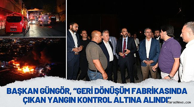 Küçük Sanayi Sitesi’nde faaliyet gösteren geri dönüşüm fabrikasında meydana gelen yangına müdahale çalışmalarını bizzat takip eden Başkan Güngör, “Küçük Sanayi Sitesi’nde faaliyet gösteren geri dönüşüm fabrikasında meydana gelen yangına itfaiye ekiplerimiz tarafından anında müdahale edildi. Çok şükür yangın kısa zamanda kontrol altına alındı ve can kaybı yaşanmadı. Tüm ekiplerimize göstermiş oldukları yoğun gayretlerinden dolayı teşekkür ediyorum. Fabrika sahiplerimize ve çalışanlarına da geçmiş olsun dileklerimi iletiyorum” dedi.