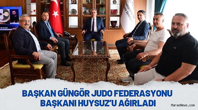 Kahramanmaraş Büyükşehir Belediye Başkanı Hayrettin Güngör, 13 - 15 Mayıs tarihleri arasında Kahramanmaraş’ta düzenlenen 2022 Yıldızlar Türkiye Judo Şampiyonası dolayısıyla şehre gelen Türkiye Judo Federasyonu Başkanı Sezer Huysuz’u makamında ağırladı. Ziyarette Gençlik ve Spor İl Müdürü Cemil Boz, Kahramanmaraş Judo İl Temsilcisi Mehmet Reyhan ve Judo Antrenörleri Hamza Selen ile İshak Yüce de yer aldı. Misafirlere nazik ziyaretlerinden dolayı teşekkür eden Başkan Güngör, “Şehrimizde yapılan 2022 Yıldızlar Türkiye Judo Şampiyonası sebebiyle ziyaretimize gelen Gençlik ve Spor İl Müdürümüz Cemil Boz’un beraberinde Judo Federasyonu Başkanı Sezer Huysuz, Judo İl Temsilcisi Mehmet Reyhan ve Antrenörler Hamza Selen ile İshak Yüce’yi misafir ettik. Nazik ziyaretlerinden dolayı misafirlerimize teşekkür ediyorum” dedi.