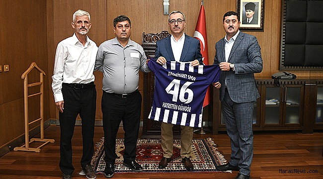 Kahramanmaraş Büyükşehir Belediye Başkanı Hayrettin Güngör, Bölgesel Amatör Lig’de mücadele eden Karaziyaret Spor Kulübü Başkanı Ali Sivri, Yönetim Kurulu Üyesi Ramazan Demirdelen ve Karaziyaret Mahalle Muhtarı Hacı Ahmet Sivri’yi makamında ağırladı. Karaziyaret Spor Kulübü’nün sezon hazırlıkları hakkında heyetten bilgiler alan Başkan Hayrettin Güngör, ziyaretleri için misafirlerine teşekkür ederek yeni sezonda başarılar diledi. Başkan Güngör, “Bölgesel Amatör Lig’de mücadele eden Karaziyaret Spor Kulübümüzün Başkanı Ali Sivri, Yönetim Kurulu Üyesi Ramazan Demirdelen ve Karaziyaret Mahalle Muhtarımız Hacı Ahmet Sivri misafirimiz oldu. Takımımızın son durumuna ve yeni sezon hazırlıklarına ilişkin bilgiler aldık. Büyükşehir Belediyesi olarak daima spor ve sporcunun yanındayız. Amatör spor kulüplerimize desteğimizi artırarak sürdürüyoruz. Karaziyaret Spor’a da yeni sezonda başarılar diliyoruz” diye konuştu.