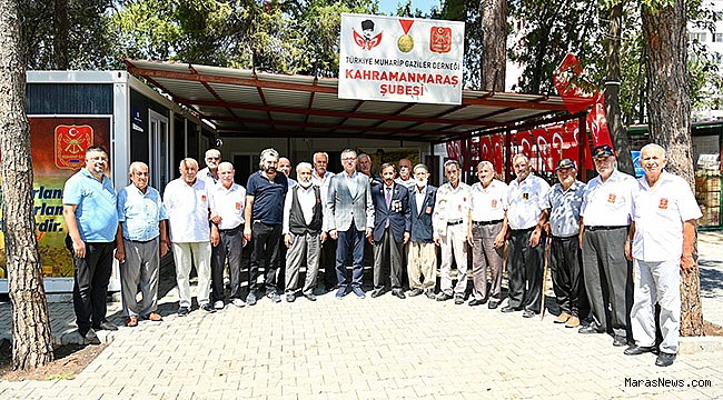 Kahramanmaraş Büyükşehir Belediye Başkanı Hayrettin Güngör, Trabzon Caddesi’nde kurulan konteynerde faaliyetlerini sürdüren Türkiye Muharip Gaziler Derneği Kahramanmaraş Şubesi’ni ziyaret etti. Büyükşehir Belediyesi Meclis Üyesi Ramazan Kibar’ın da yer aldığı ziyarette, dernek başkanı Tayfun Özbek ve yönetim kurulu üyeleriyle sohbet eden Başkan Hayrettin Güngör, “Türkiye Muharip Gaziler Derneği Kahramanmaraş Şube Başkanı Tayfun Özbek ve değerli yönetim kurulu üyelerine nazik ev sahiplikleri için teşekkür ediyorum. Bu aziz topraklar için canını feda eden bütün şehitlerimizi ve ahirete irtihal eden gazilerimizi bir kez daha rahmet ve minnetle yâd ediyor, hayatta olan gazilerimize de sağlıklı, uzun ömürler diliyorum” dedi. Dernek başkanı Tayfun Özbek de ziyaret ve destekleri için Büyükşehir Belediye Başkanı Hayrettin Güngör’e teşekkür etti.