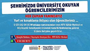 Yurt ve konaklama noktasında öğrencilerin sorun yaşamaması için Büyükşehir Belediyesi harekete geçti. Bu kapsamda, kentin merkezi iki bölgesinde "Gençlik Noktaları" oluşturuldu. Necip Fazıl Kısakürek Kültür Merkezi ve Büyükşehir Belediyesi önünde hizmet verecek noktaların yanı sıra 0531 082 00 93 WhatsApp hattından da öğrencilere destek sağlanacak. Barınma desteği verileceğini sosyal medya hesabından paylaşan Başkan Hayrettin Güngör mesajında, "Kıymetli öğrencilerimizin yurt ve konaklama ile ilgili mağduriyet yaşamamaları için her zaman yanlarındayız. Öğrenci dostu şehir olmak bunu gerektirir" ifadelerine yer verdi.