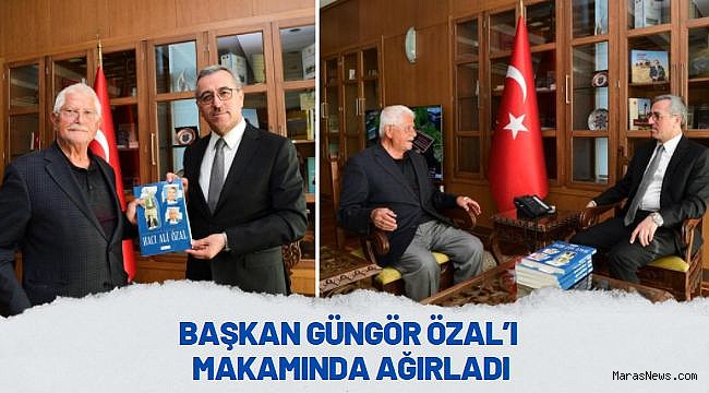 Kahramanmaraş Büyükşehir Belediye Başkanı Hayrettin Güngör, şehrin geçmiş dönem belediye başkanlarından Hacı Ali Özal’ı makamında ağırladı. Ziyaretten duyduğu mutluluğu ifade eden Büyükşehir Belediye Başkanı Hayrettin Güngör, “Şehrimize hizmet etmiş, geçmiş dönem belediye başkanlarımızdan Hacı Ali Özal ağabeyimiz misafirimizdi. Ziyaretinden ve hediye ettiği otobiyografiden dolayı teşekkürlerimi sunuyor, kıymetli ağabeyimize afiyetler diliyorum” dedi.