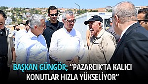 Pazarcık programına ilişkin değerlendirmelerde bulunan Başkan Hayrettin Güngör, “Sayın Valimizle birlikte Pazarcık ilçemizde Kaymakamlık, Belediyemiz ve Emniyet Müdürlüğü’müzü ziyaret ettik. İlçemizde yapımı devam eden kalıcı konut inşaatlarında incelemelerde bulunduk. Gerçekten çok hızlı bir çalışma yürütülüyor. Çadırlardan konteynerlere, konteynerlerden de kalıcı konutlara hızlı bir süreç ilerliyor. Kahramanmaraş’ımızda 82 bin kalıcı konut yapılacak. Bunların yarıya yakınında süreçler başladı. İnşallah kalıcı konutlar taahhüt edilen sürede hak sahiplerine teslim edilecek” ifadelerini kullandı.