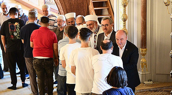 Kahramanmaraş Büyükşehir Belediye Başkanı Hayrettin Güngör, Abdülhamid Han Camii’nde kılınan bayram namazının ardından vatandaşlarla bir araya gelerek bayramlarını tebrik etti. Vali Ömer Faruk Coşkun’un da yer aldığı bayramlaşma programı sonrası açıklamalarda bulunan Büyükşehir Belediye Başkanı Hayrettin Güngör, “Hep birlikte Kurban Bayramı’na kavuşmanın mutluluğunu yaşıyoruz. Bayram namazımızı da Abdülhamid Han Camii’nde eda ettik ve akabinde hemşehrilerimizle bayramlaştık. Kurban Bayramımızın tüm İslam coğrafyası için hayırlara vesile olmasını, tüm dünyaya huzur, barış, sağlık ve mutluluk getirmesini diliyorum. Rabbim ibadetlerimizi kabul ve makbul eylesin inşallah” ifadelerini kullandı.