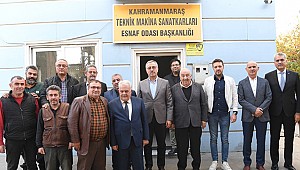 Kahramanmaraş Büyükşehir Belediye Başkanı Hayrettin Güngör, Teknik Makina Sanatkârları Esnaf Odası’nı ziyaret ederek oda başkanı Muzaffer Çil ve yönetim kurulu üyeleriyle bir araya geldi. AK Parti İl Başkan Yardımcısı Hakan Dereli, KASKİ Genel Müdürü Ahmet Kavak ve Büyükşehir Belediyesi Meclis Üyeleri’nin de yer aldığı ziyarette Başkan Güngör, oda başkanı ve yönetimiyle muhabbet etti ve istişarelerde bulundu.