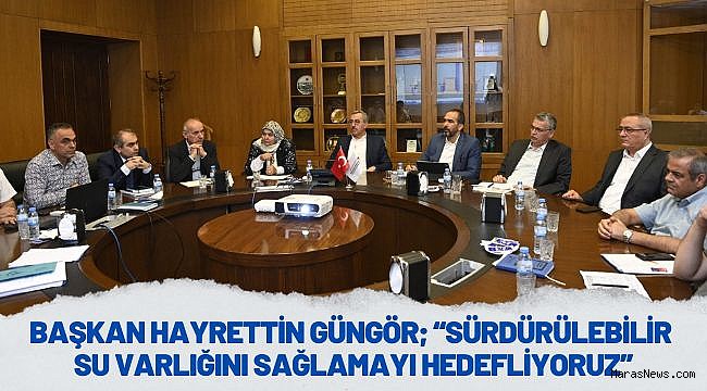 Kahramanmaraş Büyükşehir Belediye Başkanı Hayrettin Güngör, iklim değişikliği ve kuraklığa bağlı olarak değişkenlik gösteren mevcut su durumunun değerlendirilmesi için gerçekleştirilen toplantıya katıldı. Büyükşehir Belediyesi’nde gerçekleştirilen toplantıda Başkan Hayrettin Güngör’ün yanı sıra İçişleri Komisyon Başkanı Celalettin Güvenç, AK Parti Kahramanmaraş Milletvekilleri Habibe Öçal ve Ahmet Özdemir, Büyükşehir Belediyesi yetkilileri, KASKİ ve DSİ Bölge Müdürlüğü temsilcileri de yer aldı. Toplantı sonrası açıklamalarda bulunan Başkan Hayrettin Güngör, “Milletvekillerimiz Sayın Celalettin Güvenç, Ahmet Özdemir ve Habibe Öçal ile KASKİ ve DSİ Bölge Müdürlüğü temsilcilerinden; iklim değişikliği ve kuraklığa bağlı olarak değişkenlik gösteren şehrimizin mevcut su durumu hakkında bilgiler aldık. Şehrimizde sürdürülebilir su varlığını sağlamak için paydaşlarımızla birlikte çalışmalarımız devam edecek” ifadelerini kullandı.