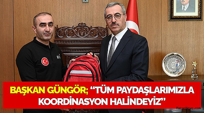 Kahramanmaraş Büyükşehir Belediye Başkanı Hayrettin Güngör, Kahramanmaraş İl Afet ve Acil Durum (AFAD) Müdürü Yılmaz Durgut’u misafir etti. Şehirde afet ve acil müdahale gerektiren olaylara karşı gerçekleştirilen çalışmaların ve hazırlıkların istişare edildiği ziyarete ilişkin değerlendirmelerde bulunan Başkan Hayrettin Güngör, “AFAD Kahramanmaraş İl Müdürümüz Yılmaz Durgut misafirimiz oldu. Şehrimizde afet ve acil müdahale gerektiren olaylara karşı aldığımız tedbirleri istişare ettik. Bu noktada tüm paydaşlarımızla yüksek bir koordinasyon içerisinde çalışmalarımızı sürdürüyoruz. AFAD Müdürümüz Sayın Durgut’a nazik ziyaretleri için teşekkür ediyorum” dedi. AFAD Kahramanmaraş İl Müdürü Yılmaz Durgut da nazik misafirperverliği için Büyükşehir Belediye Başkanı Hayrettin Güngör’e teşekkür etti.