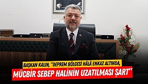 Bizler hala enkaz altındayız ifadelerini kullanan Başkan Kalın, “Deprem bölgesi ve İlimizde Mücbir sebep halinin uzatılmamasını, meslek mensuplarımız, serbest meslek erbabları, esnaf sanatkarlarımız, sanayi ve iş dünyamız asla kabullenemeyecektir.
