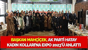 Sıcak ve samimi bir ortamda AK Partili kadınlarla sohbet havasında gerçekleştirilen toplantıda Başkan Mahçiçek, ev sahipliğini yapacakları EXPO 2023 ve yeni projelere ilişkin bilgiler verdi.