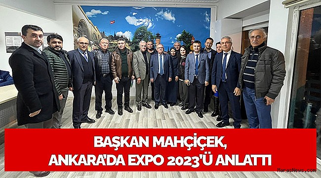 Dernek binasında Ankara’daki hemşerileriyle bir gelen Başkan Mahçiçek, samimi ve güzel bir sohbet eşliğinde Cumhurbaşkanı Recep Tayyip Erdoğan’ın katılımıyla Nisan ayında açılışı gerçekleştirilecek EXPO 2023 hakkında bilgiler verdi.